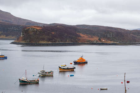 United Kingdom, MAR 27 2015 - Overcast view of some vessel parked near Portree Harbour