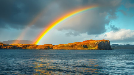 Scenic view of the Kyle Rhea, a strait splitting Skye from the Scottish mainland near Kylerhea village on the east coast of the Isle of Skye, in the Scottish Highlands