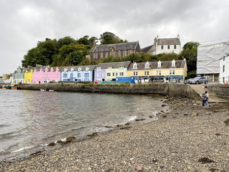 Portree, UK - Jul 7, 2024: Beautifully painted houses aligned along the harbour in Portree, UK.