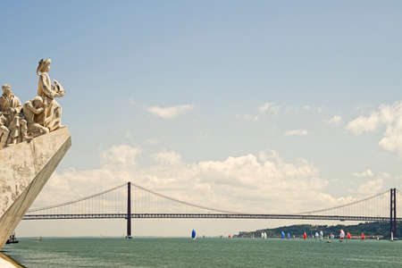 View of the river tejo from the monument of the Discoveries to the bridge 25 of april in lisbon, Portugal