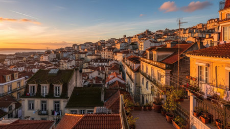 Lisbon Portugal sunrise city skyline at Lisbon Alfama district