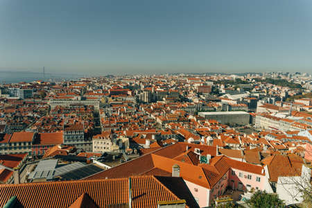Beautiful cityscape panorama. View on the old town during the day in Lisbon city, Portugal