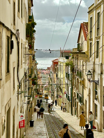 Sunny view of one of the historical neighbourhoods of Lisbon, Portugal.