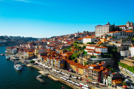 Porto, Portugal, old town colorful buildings of historical Riberia district and the Douro River see'
