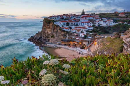 Beautiful coastal view of Praia Azenhas do Mar near Sintra, Lisbon. Praia Azenhas do Mar is one of the best beach in Portugal.