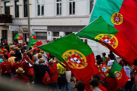 Hamburg, Germany - July 5, 2024: Portuguese fans celebrating Euro 2024 in the streets of the city
