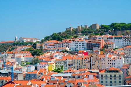 Panoramic view of Lisbon city, Portugal orange bright roofs in a suuny day.