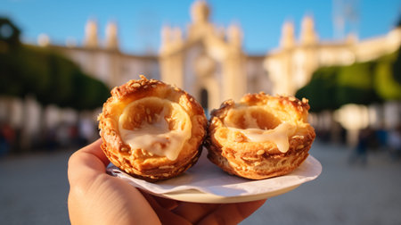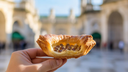 Hand Holding a Delicious Pastel de Nata, Tempting Sweet Treat