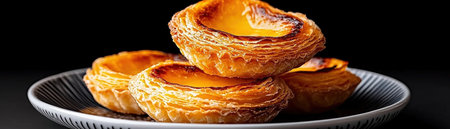 Egg tarts, traditional Portuguese dessert, pastel de nata on a plate.