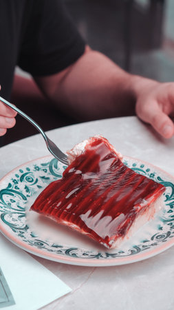 Delicious selection of cakes and pastries on display at a cafe patisserie