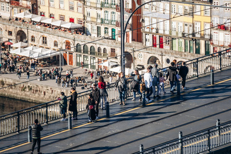 Porto, Portugal - December 28, 2024: View of the Douro River and the picturesque Ribeira district, a UNESCO World Heritage site