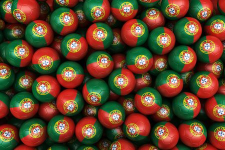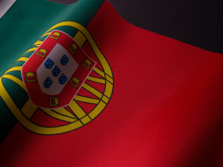 The national flag of Portugal from textiles close-up in three versions, soft focus. 3D illustration