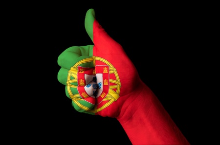 Portugal flag depicted on side part of military armored truck close up. Army forces vehicle conceptual background