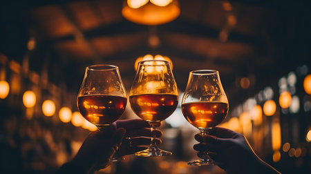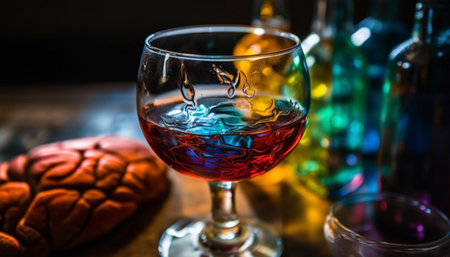 Luxury bar pours refreshing whiskey cocktail into crystal wine glass generated by artificial intelligence