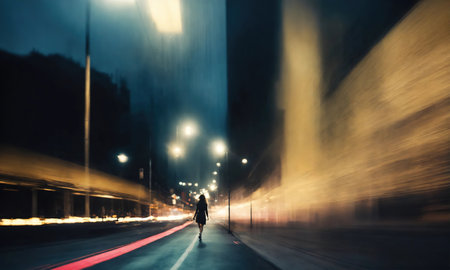 abstract motion blur of a woman walking in the city at night