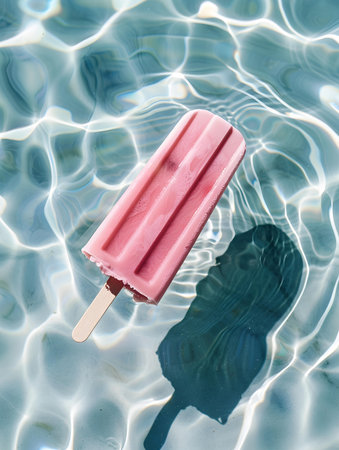 Pink Popsicle on a Pool Water Background. Summer Vacation Background
