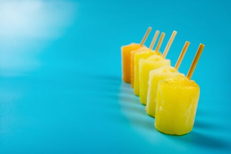 Youth ice pop from the freezer. with a touch of frost and ice. Refreshing in the heat .