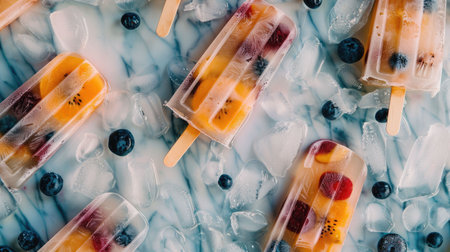 Vibrant popsicles glisten under the sun perfect for summer enjoyment and colorful treats.
