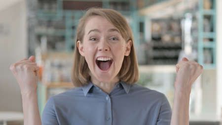 Portrait of Young Woman Celebrating Success