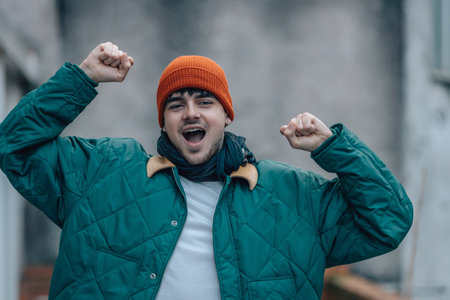 portrait of a joyful young man smiling funny, concept of happiness and teenager lifestyle, copy space for text