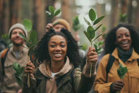 Multicultural group of happy and diverse people from around the globe coming together in unity to celebrate earth day. Showing their commitment to environmental conservation and sustainability.