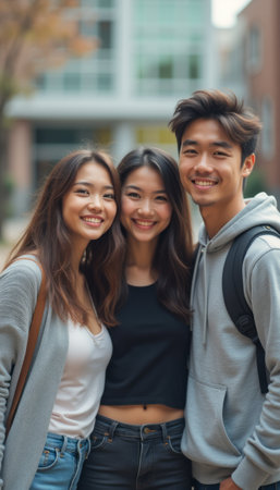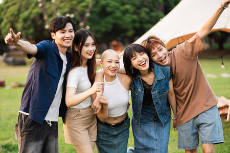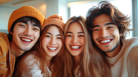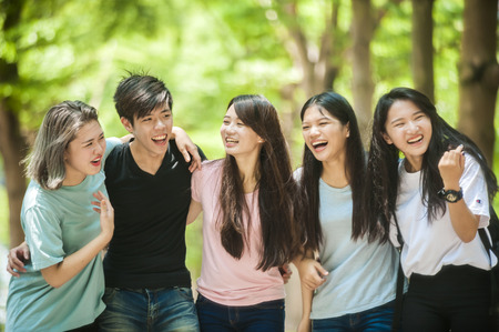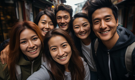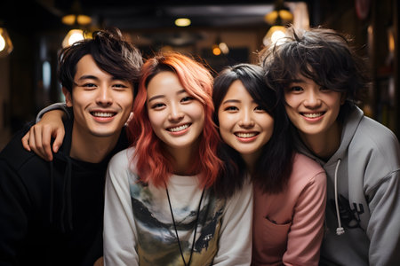a multicultural gang of jovial pals from Asia. GENERATE AI