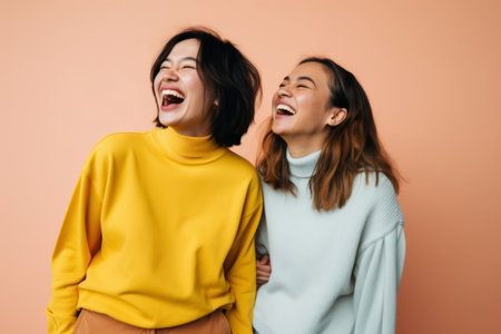 lgbtq, lgbt concept, homosexuality, portrait of two Asian women posing happy together and showing love for each other while being together.