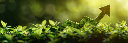 A visually striking representation of growth, featuring an upward arrow over lush greenery, symbolizing success in finance and sustainable development in nature.