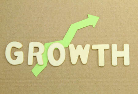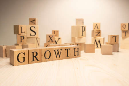 The word growth is from wooden cubes. Economy state government terms. Background made of wooden letters.