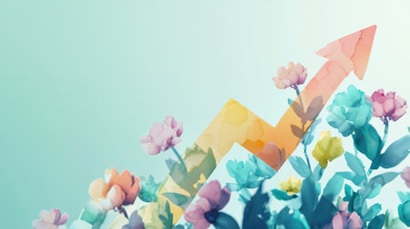 An Upward trending arrow symbolizing growth in financial business revenue with colorful flowers