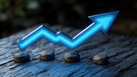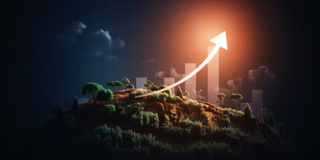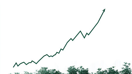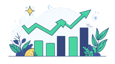 This illustration features a growth chart with upward arrows set against vibrant nature elements, representing financial success and positive trends in a creative way.