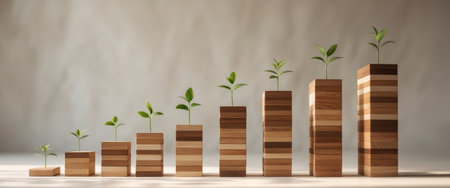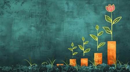 This vibrant infographic features bar graphs representing growth trends alongside a potted plant, highlighting the connection between business success and sustainability.