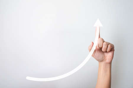 Growth business concept. Hand pointing increase graph moving up and copy space