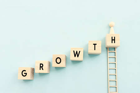Wooden blocks arranged in stair shape with the word GROWTH. Business growth, career growth or growth concept.