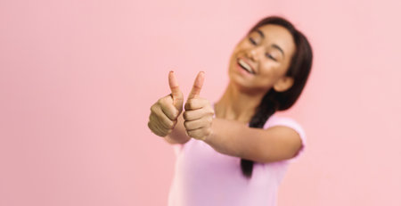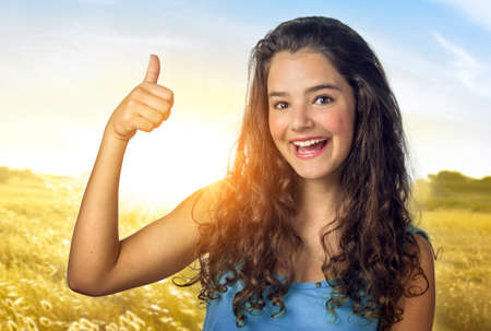 Beautiful teenage girl smiling and doing the thumbs-up sign