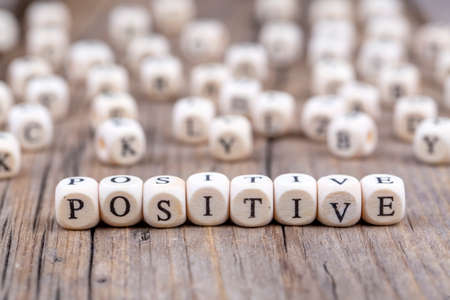 Small wooden blocks with the inscription Think positive, positive mindset concept