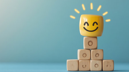Customer service and satisfaction concept. Smiley face icon on a wooden cubes. Concept of service rating, satisfaction, business marketing background