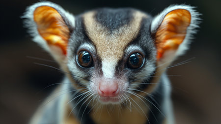 a macro picture of the face of a possum.