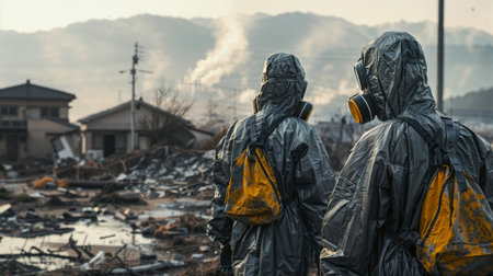 Hazmat team inspects a desolate landscape in the aftermath of a nuclear fallout