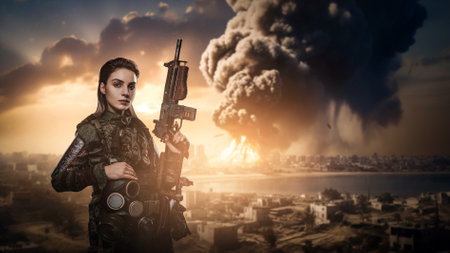 A special forces fighter passes through the affected area. Armed and focused. Generative AI