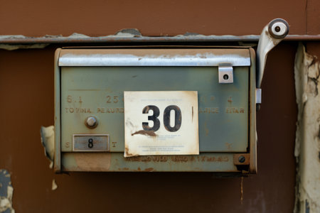 Rusty old mailboxes are hanging on a building wall, waiting for the mail to be delivered