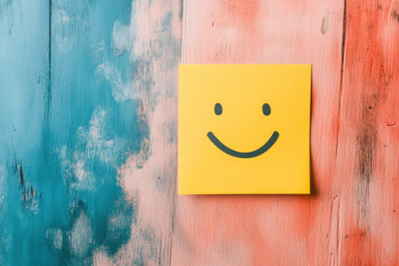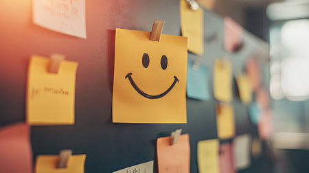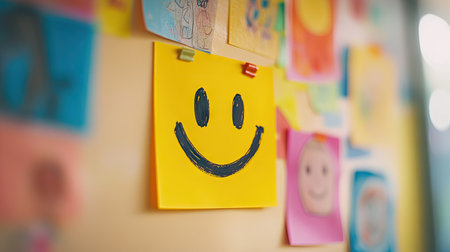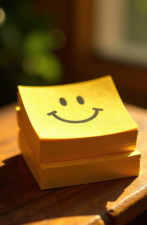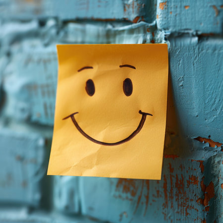 A bright yellow sticky note features a simple smiley face bringing joy and positivity to the surroundings.
