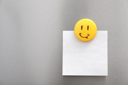 Cheerful Expression on Empty Yellow Adhesive Note with Copy Space Image