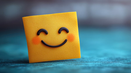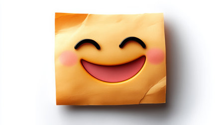 Smiling sticky-note emoji slightly tilted with realistic paper fold at corner, isolated on clean background with soft lighting