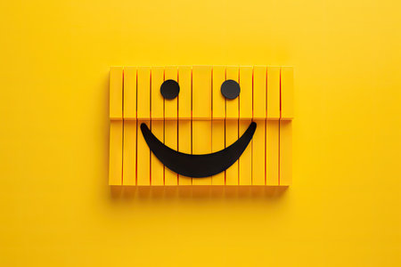 Minimalist piano key emoji on yellow background Aesthetic music concept positive emotions