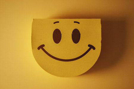 Smiley face on yellow paper background, smiley face on paper