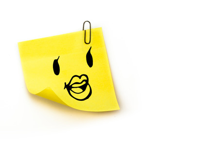 Smiling face against sticky note with grey paperclip