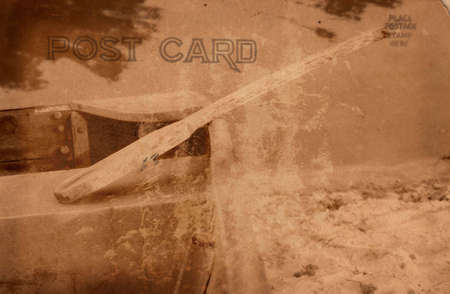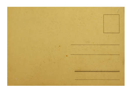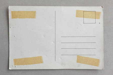 Vintage crumpled postcard with holes and adhesive tape stains. Background texture.