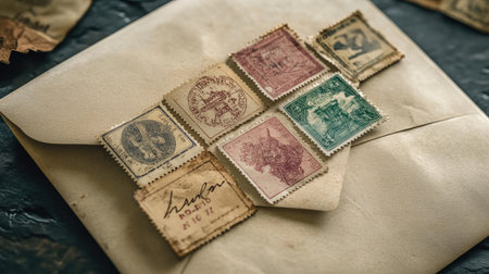A vintage-style envelope with stamps from around the world, evoking the spirit of travel and adventure.