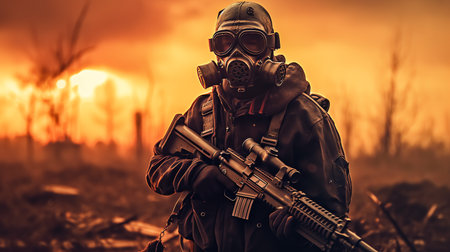Image of stalker with gun Ecology catastrophe